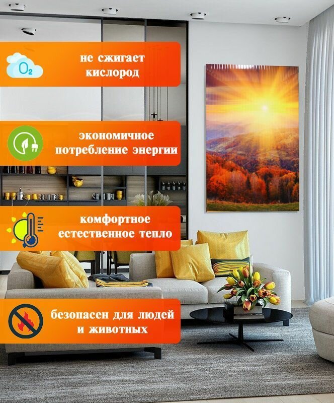 Инфракрасный пленочный обогреватель Домашний очаг настенный, 0.5 кВт, 15 м², осенний лес