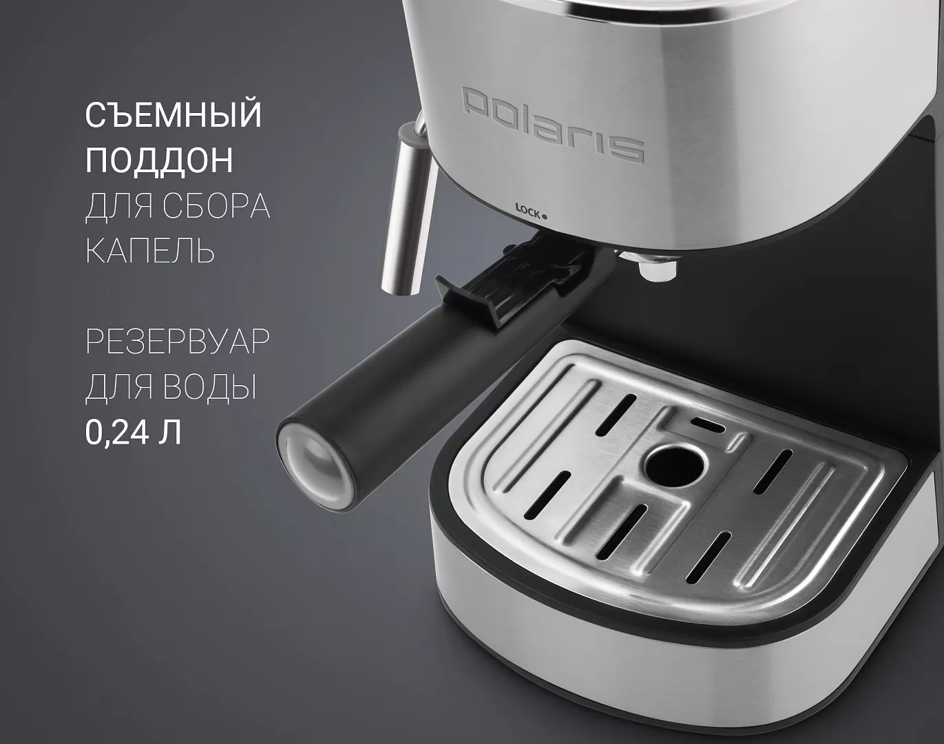 Кофеварка Polaris PCM 4009, рожковая, нержавеющая сталь