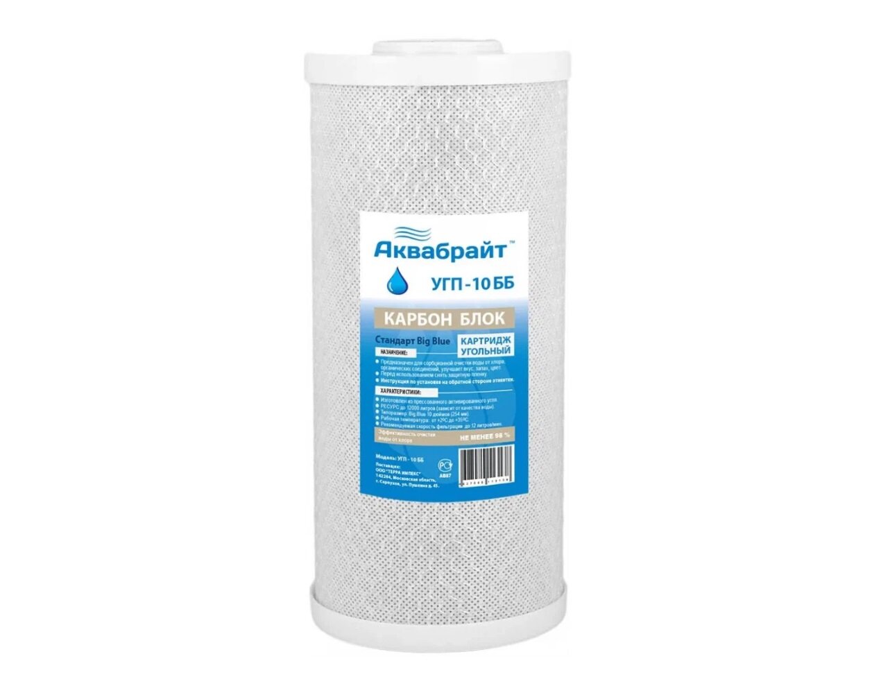 Картридж угольный "Аквабрайт УГП-10 ББ" для сорбционной очистки