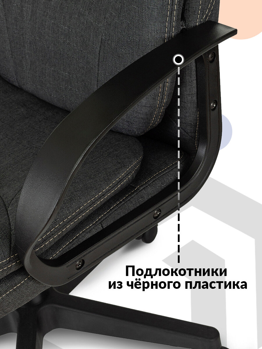 | Минусы: | Пластиковые подлокотники без мягких накладок. Локтям не удобно. |