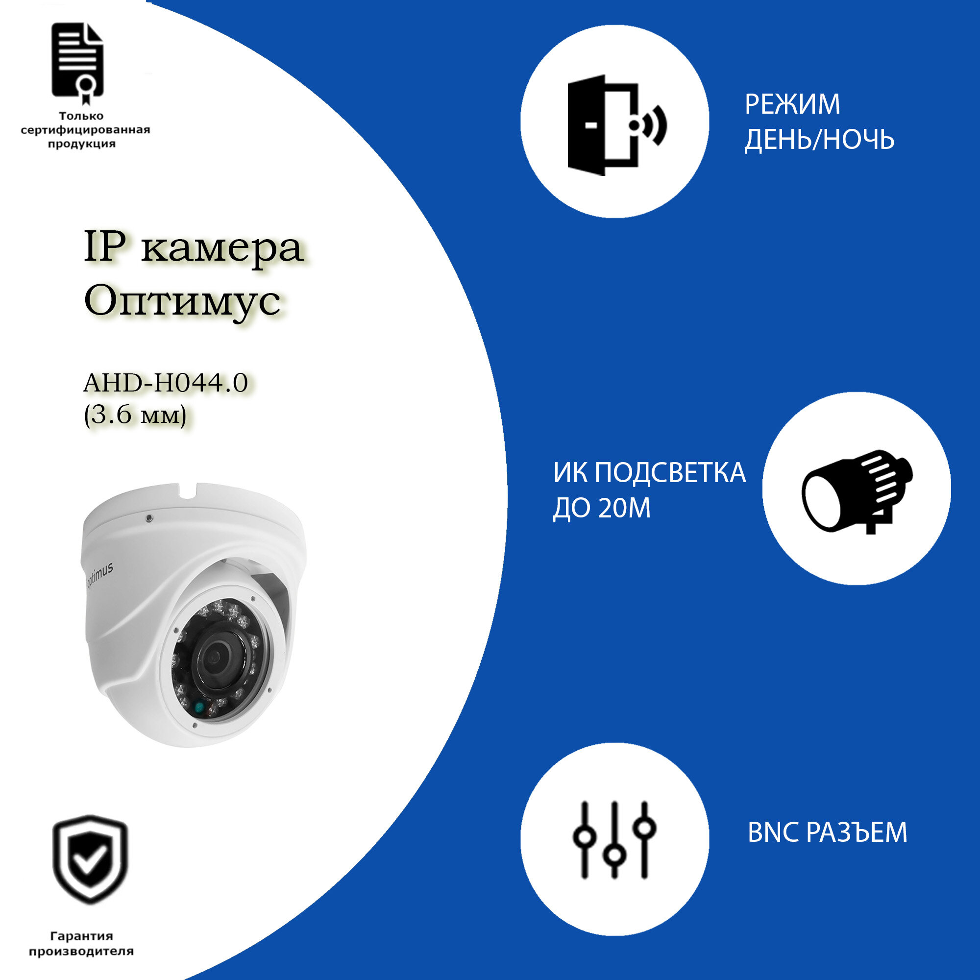 Видеокамера Optimus 4МП Купольная IP66 20 метров AHD-H044.0(3.6) интересное: