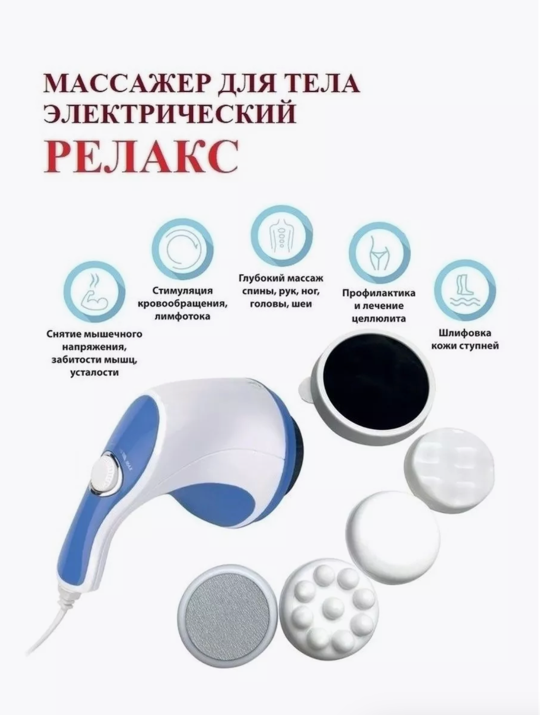 Массажер для тела электрический Relax & Spin Tone, 5 насадок, Массажер для спины, шеи, рук, плеч и ног