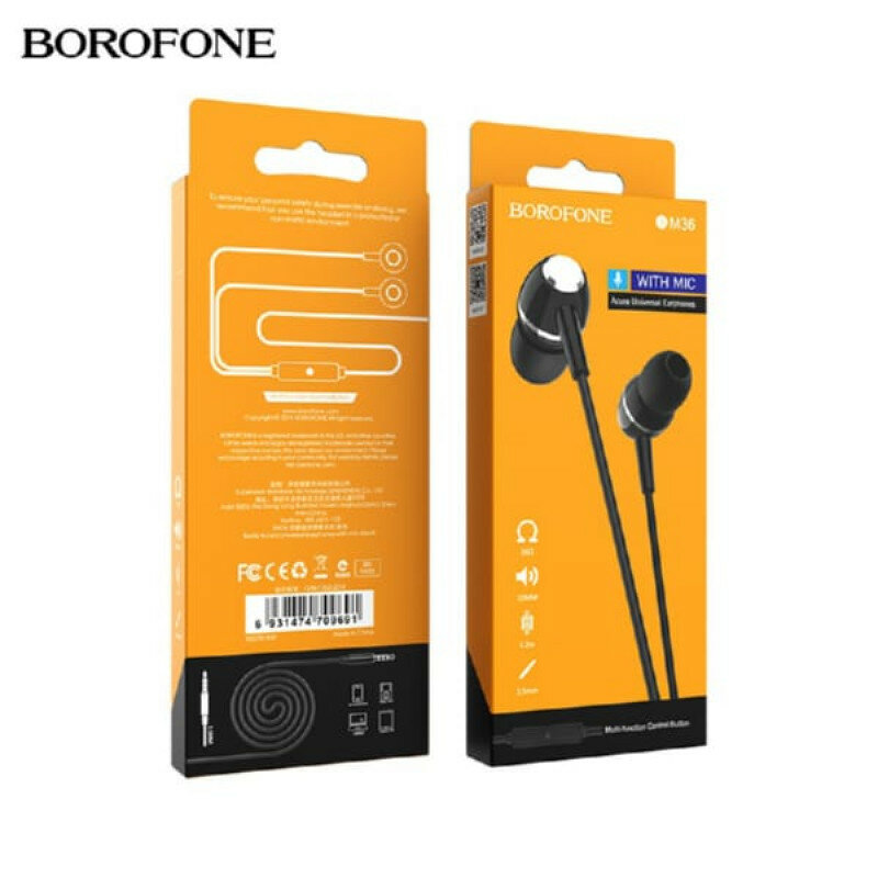 Гарнитура BOROFONE BM36 Acura 3.5 мм, вставная, 1.2м (черный)