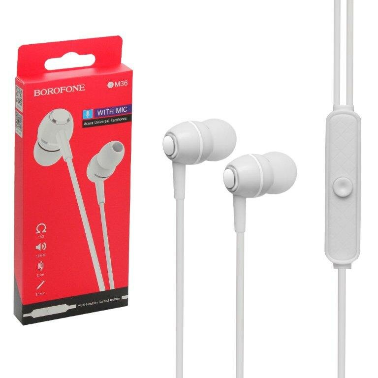 Гарнитура BOROFONE BM36 Acura 3.5 мм, внутриканальная, 1.2м (белый)