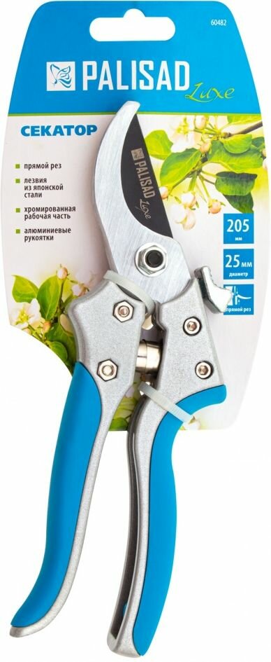 Секатор прямого реза 205 мм, металлические обрезиненные рукоятки, Luxe, Palisad 60482