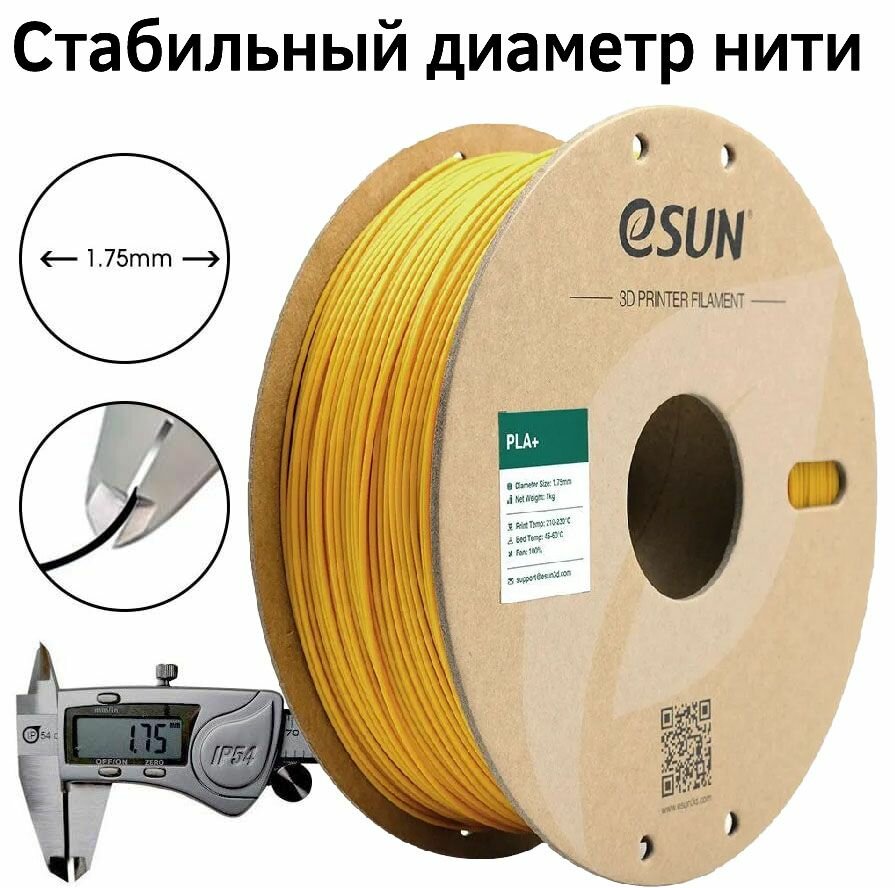 Купить Катушка PLA+ пластик для 3D принтера ESUN 1.75 Желтый 1кг