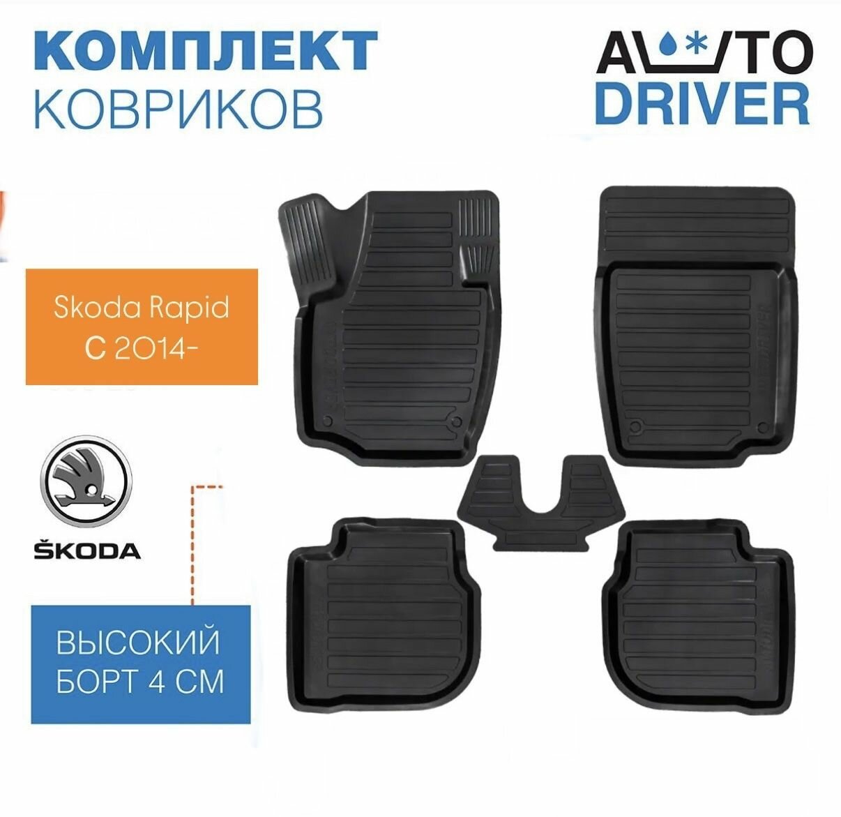 Купить Коврики для Skoda Rapid Шкода Рапид 2014-2020 резиновые с бортом Автодрайвер