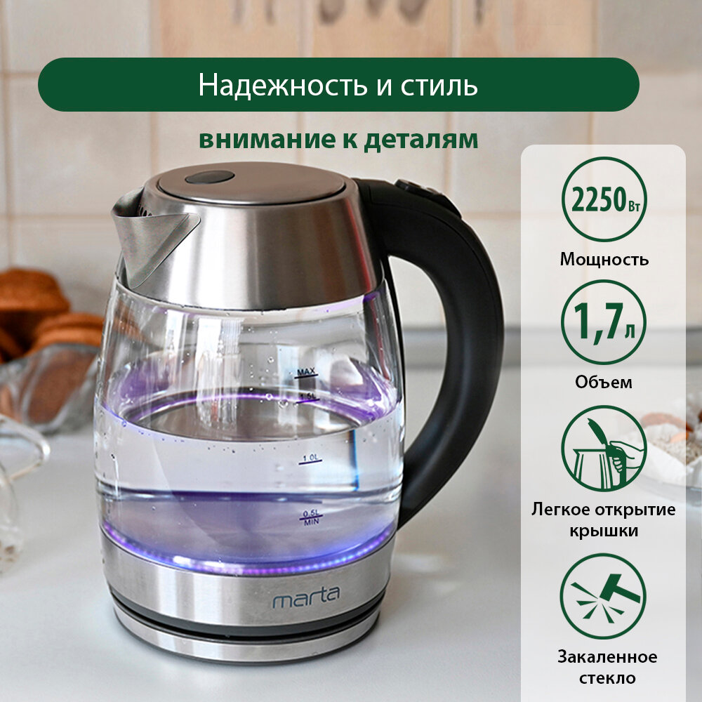 Чайник электрический MARTA MT-4561 Чёрный жемчуг 1,7л интересное: