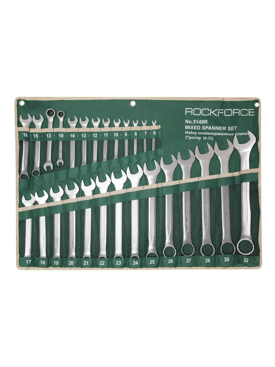 Набор ключей комбинированных 27пр.(6-28,30,32мм+ключи трещоточные:10,13мм), на полотне Rock FORCE RF-5149R интересное: