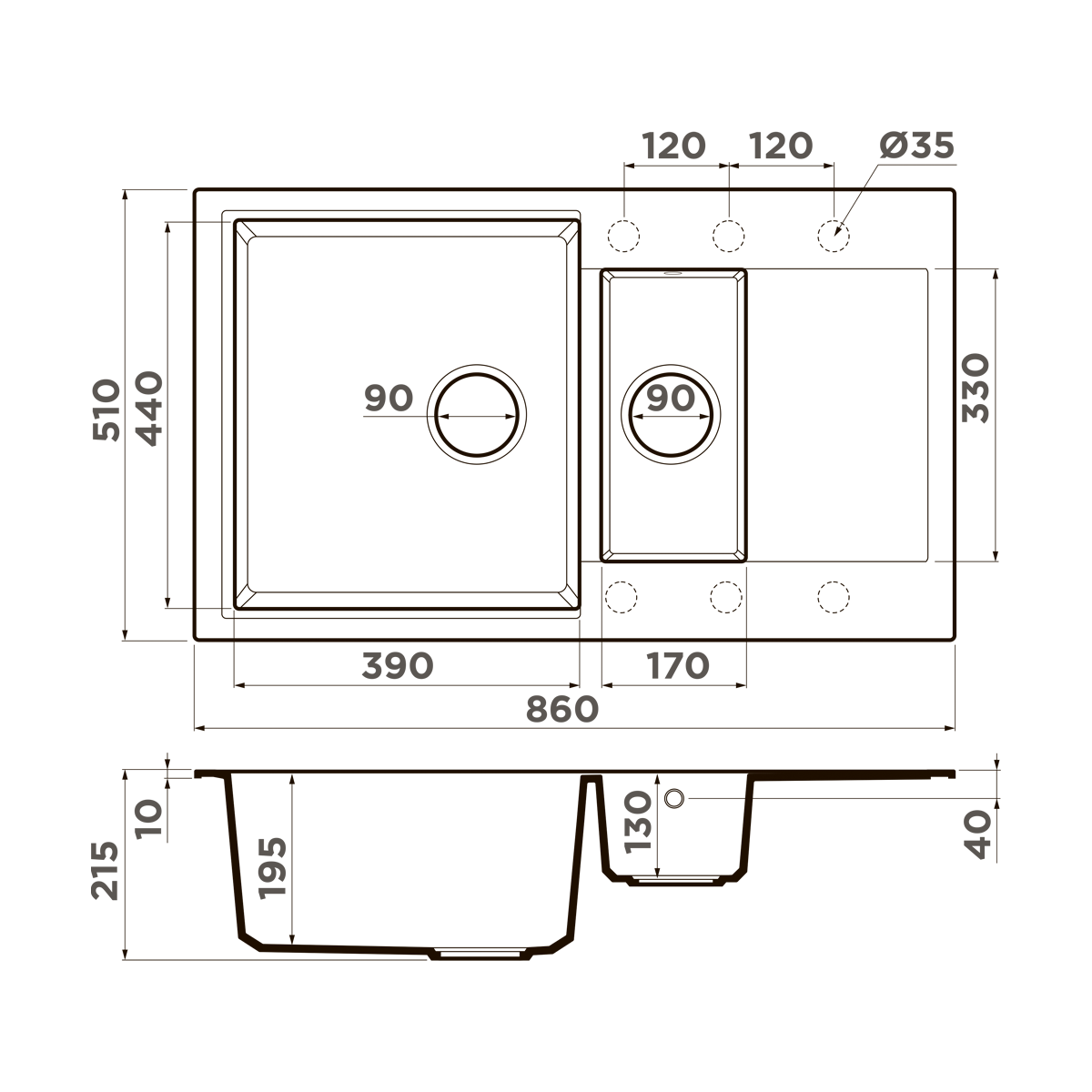 Купить Кухонная мойка OMOIKIRI Daisen 86-2-DC 86х51см искусственный гранит/темный шоколад