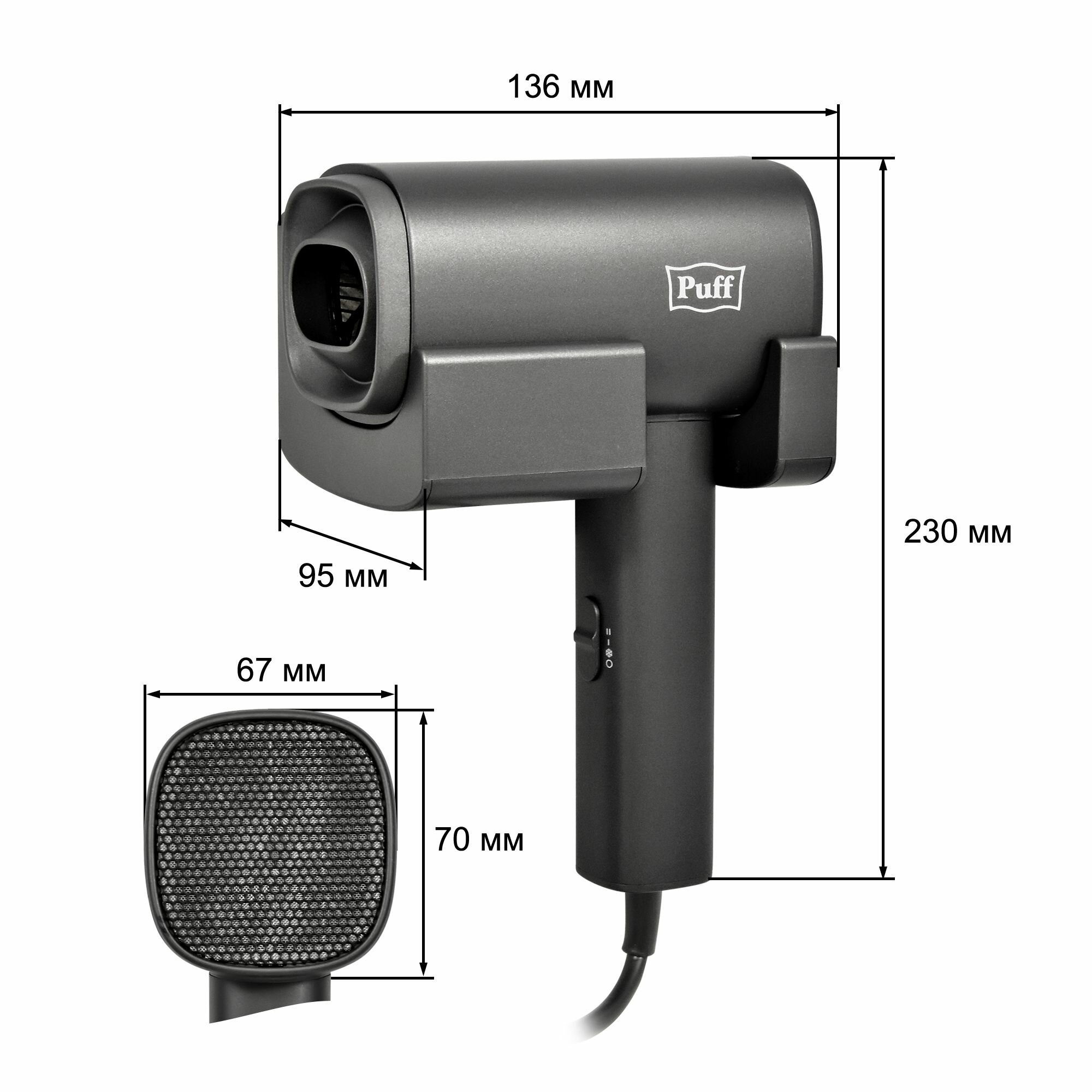 Фен для волос настенный Puff-1601Gr, серый матовый, Арт.: 1405.011