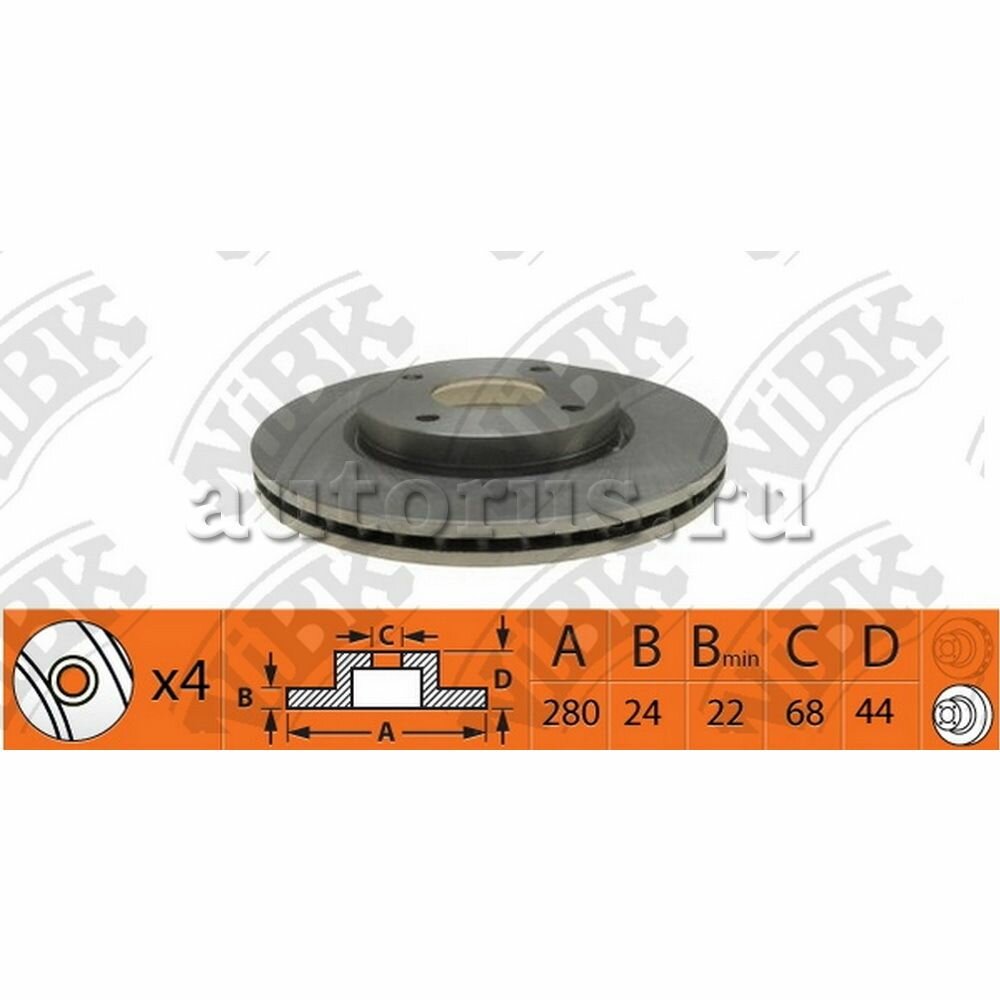 NIBK RN1424 Торм.диск пер.вент.[279x24] 4 отв. 2шт