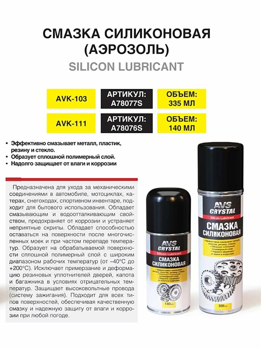 Смазка! Универсальная Силиконовая Аэрозоль 335 Мл Avs A78077s AVS арт. A78077S