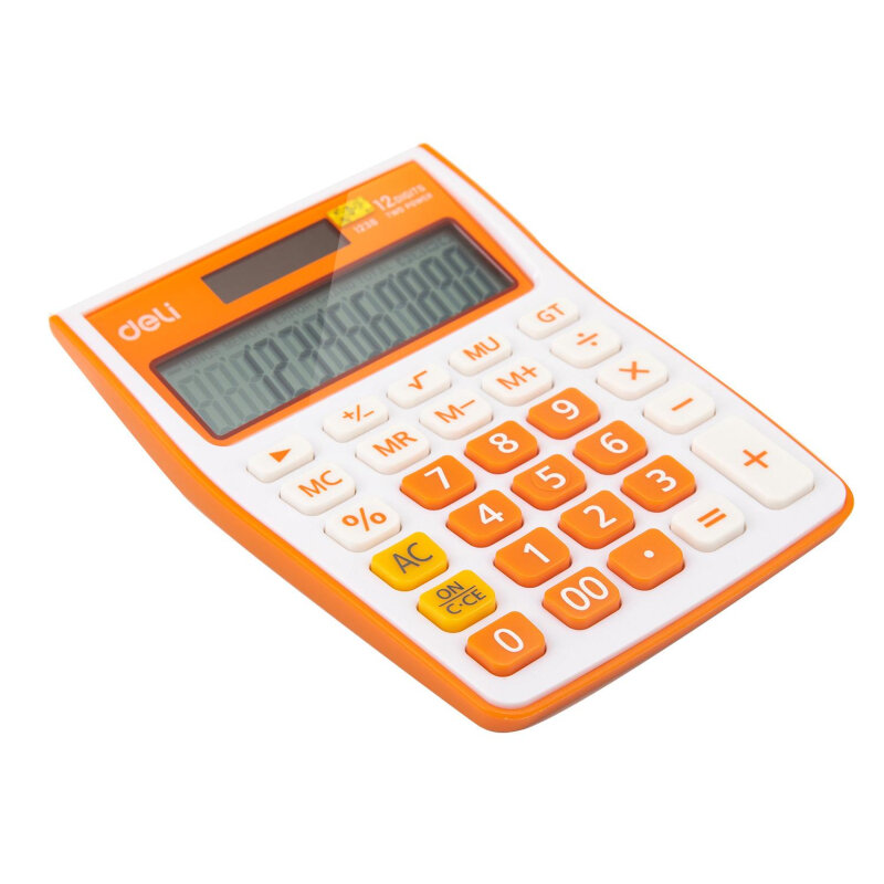Купить Калькулятор настольный комп. Deli E1238, 12-р, дв.пит., 145x105мм,оранжевый