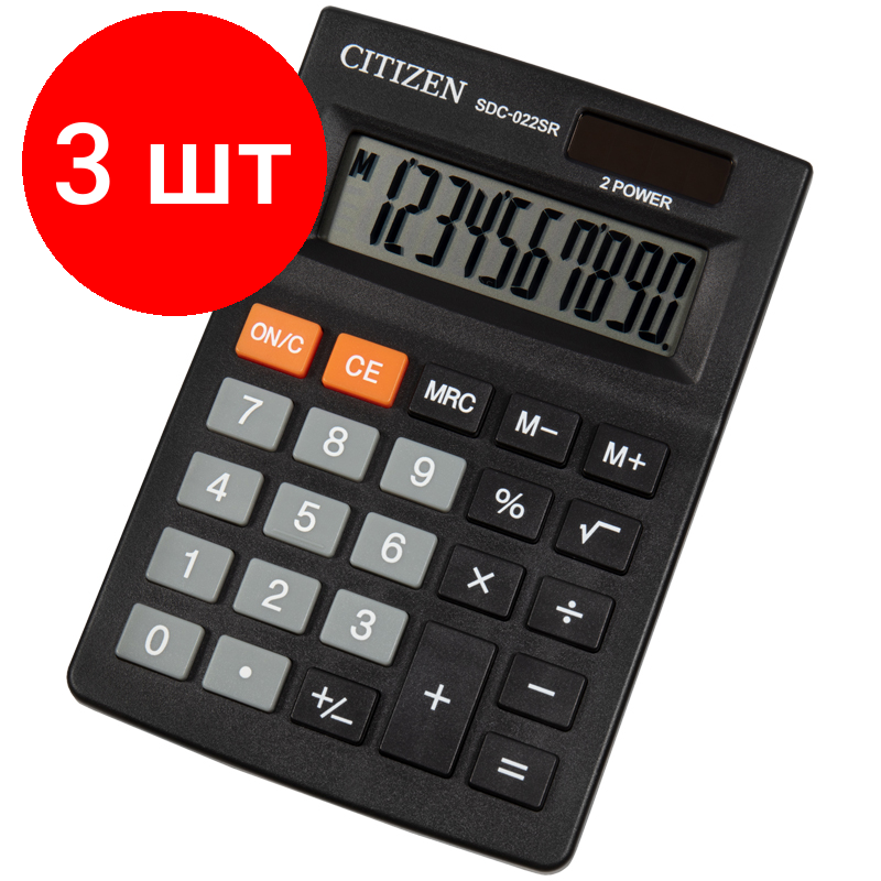 Купить Комплект 3 шт, Калькулятор настольный Citizen SDC-022SR, 10 разрядов, двойное питание, 88*127*23мм, черный