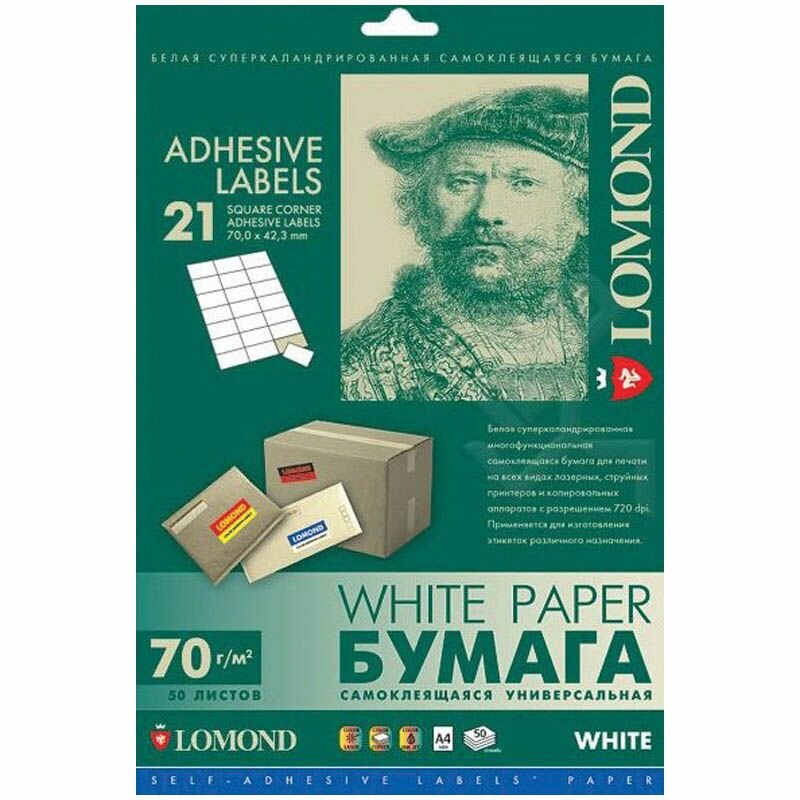 Самоклеящаяся бумага LOMOND универсальная для этикеток, A4, 21 делен. (70 x 42.3 мм), 70 г/м2, 50 листов