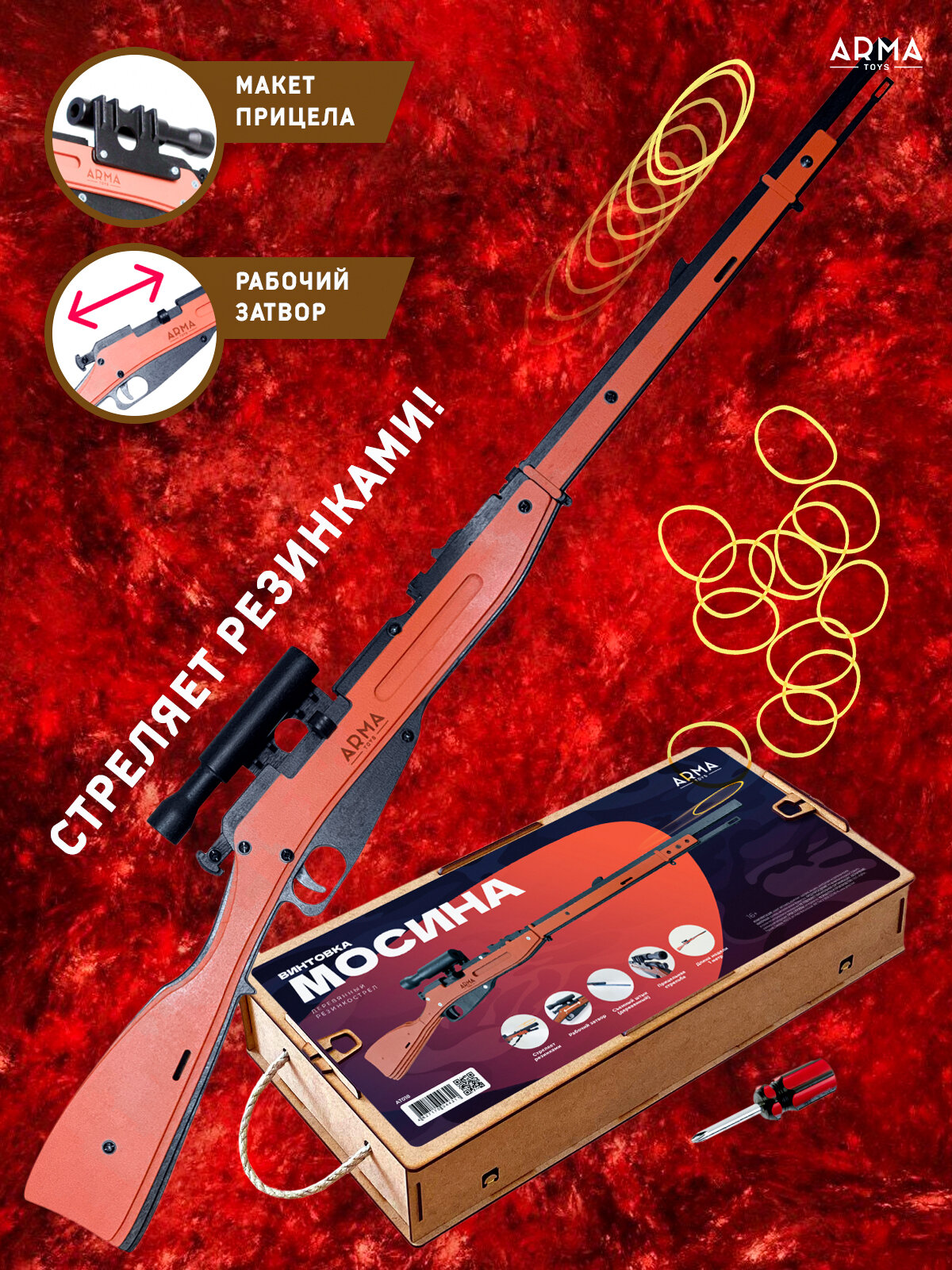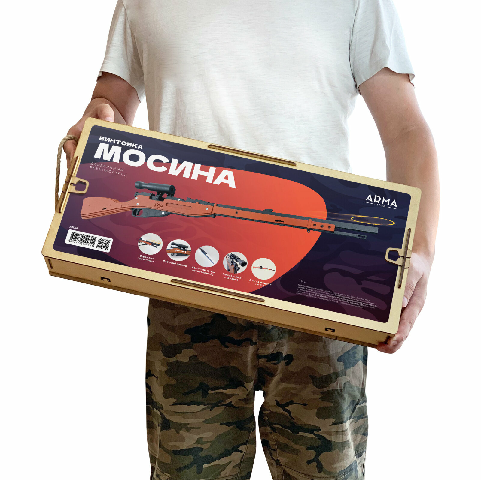 Купить Игрушечная винтовка ARMA TOYS "Винтовка Мосина пехотная", деревянный резинкострел, без прицела c надписью "9 мая"