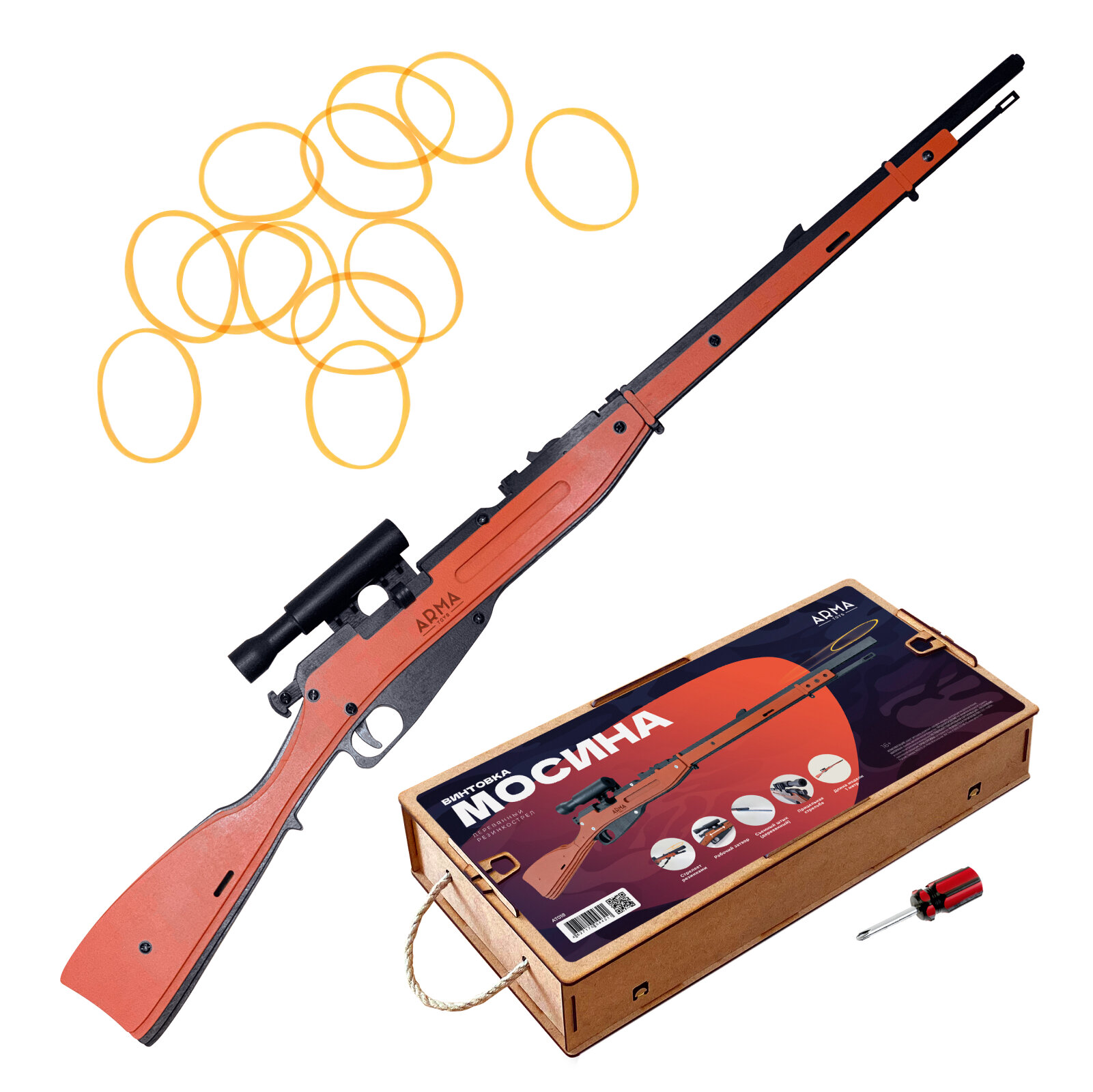 Игрушечная винтовка ARMA TOYS "Винтовка Мосина пехотная", деревянный резинкострел, без прицела