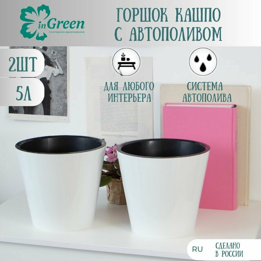 Горшок InGreen Лондон, с системой автополива, дренажным отверстием, 5 литров