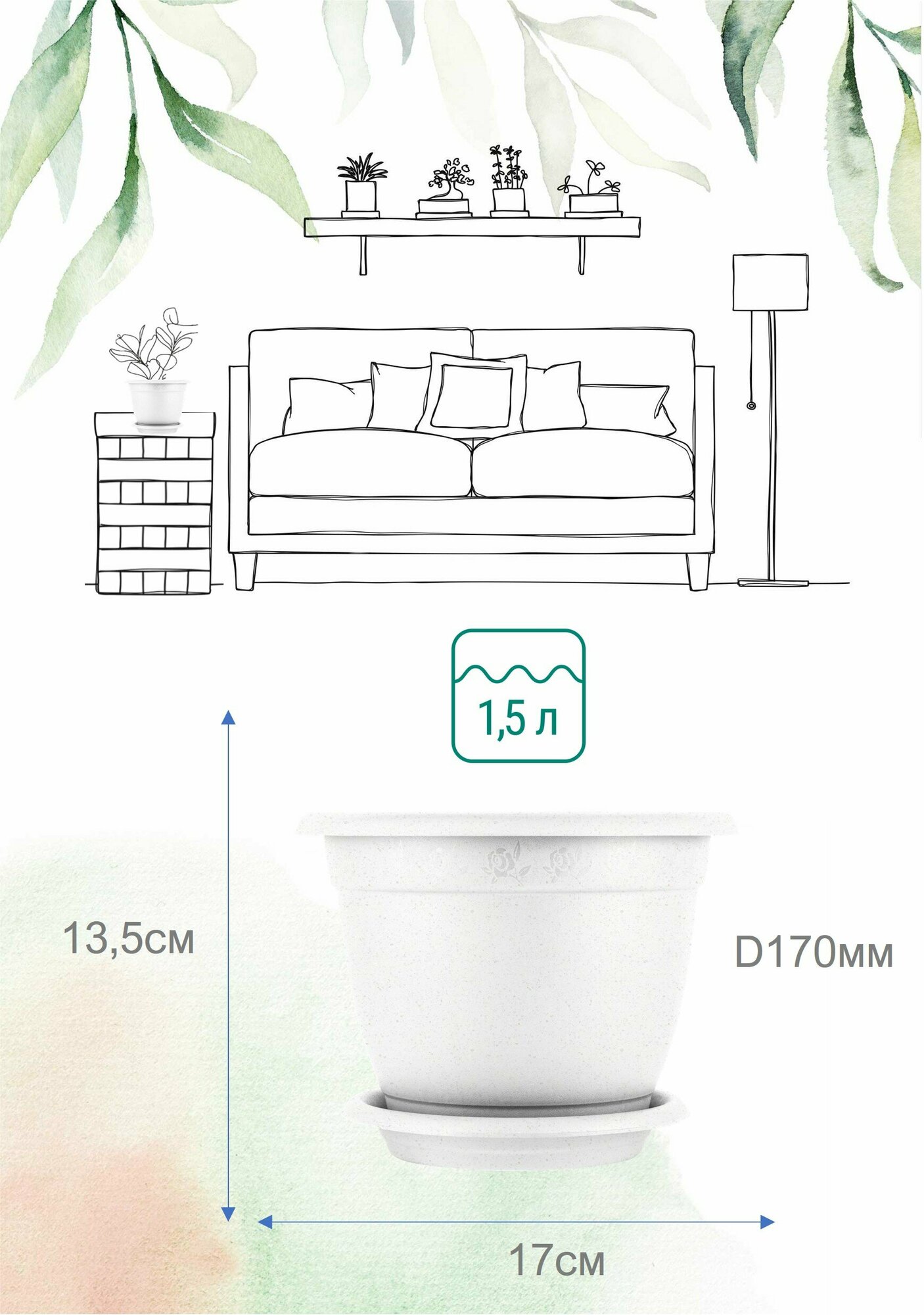 Горшок для цветов Борнео D=170мм (1,5л) с подставкой №2 мраморный, пластик ING42017 InGreen (арт. 239960)