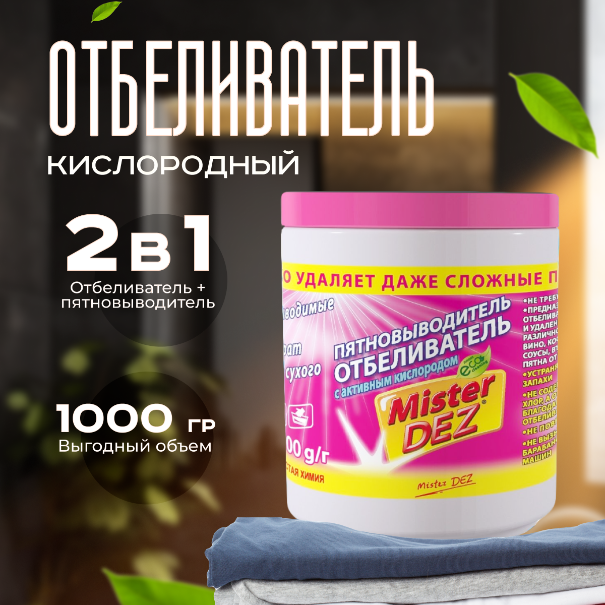 Кислородный отбеливатель-пятновыводитель Mister Dez Eco-Cleaning 1кг, очиститель для белого, цветного белья, детский отбеливатель экологичный, перкарбонат натрия, средство для чистки мебели дома, золота, плиты и кроссовок