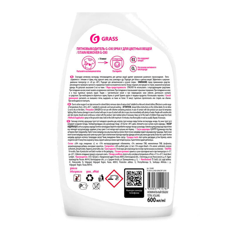 Пятновыводитель-отбеливатель GRASS G-oxi spray для цветных вещей 600мл