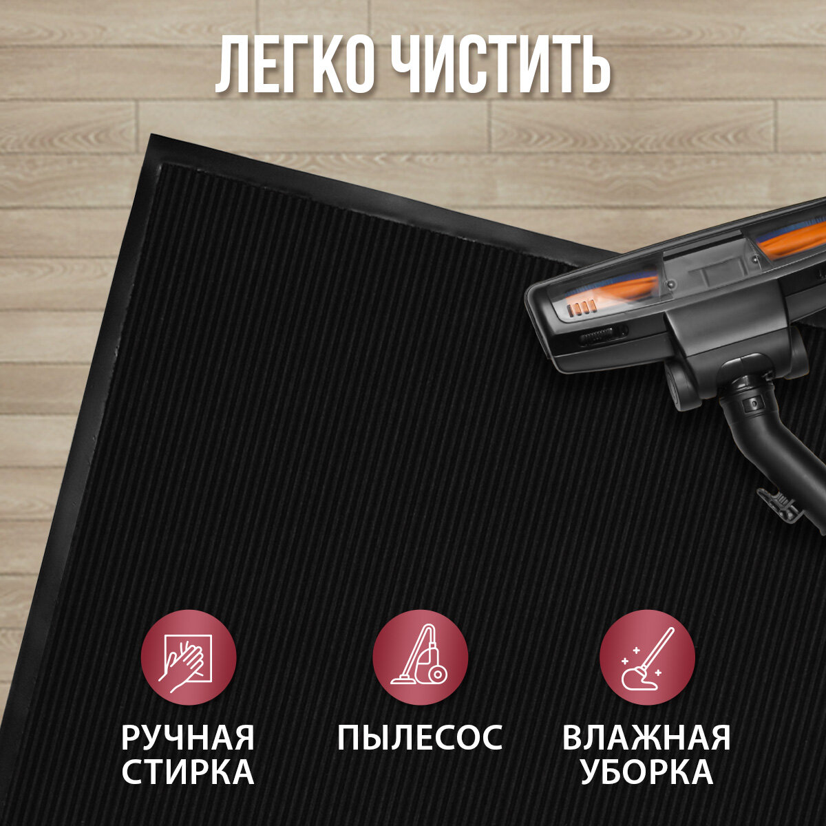 Коврик грязезащитный, черный, 90см х 120см, ребристый