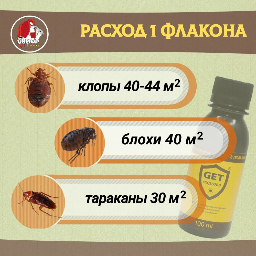 Гет Экспресс (Get Express) средство от клопов, тараканов, блох, муравьев 100 мл