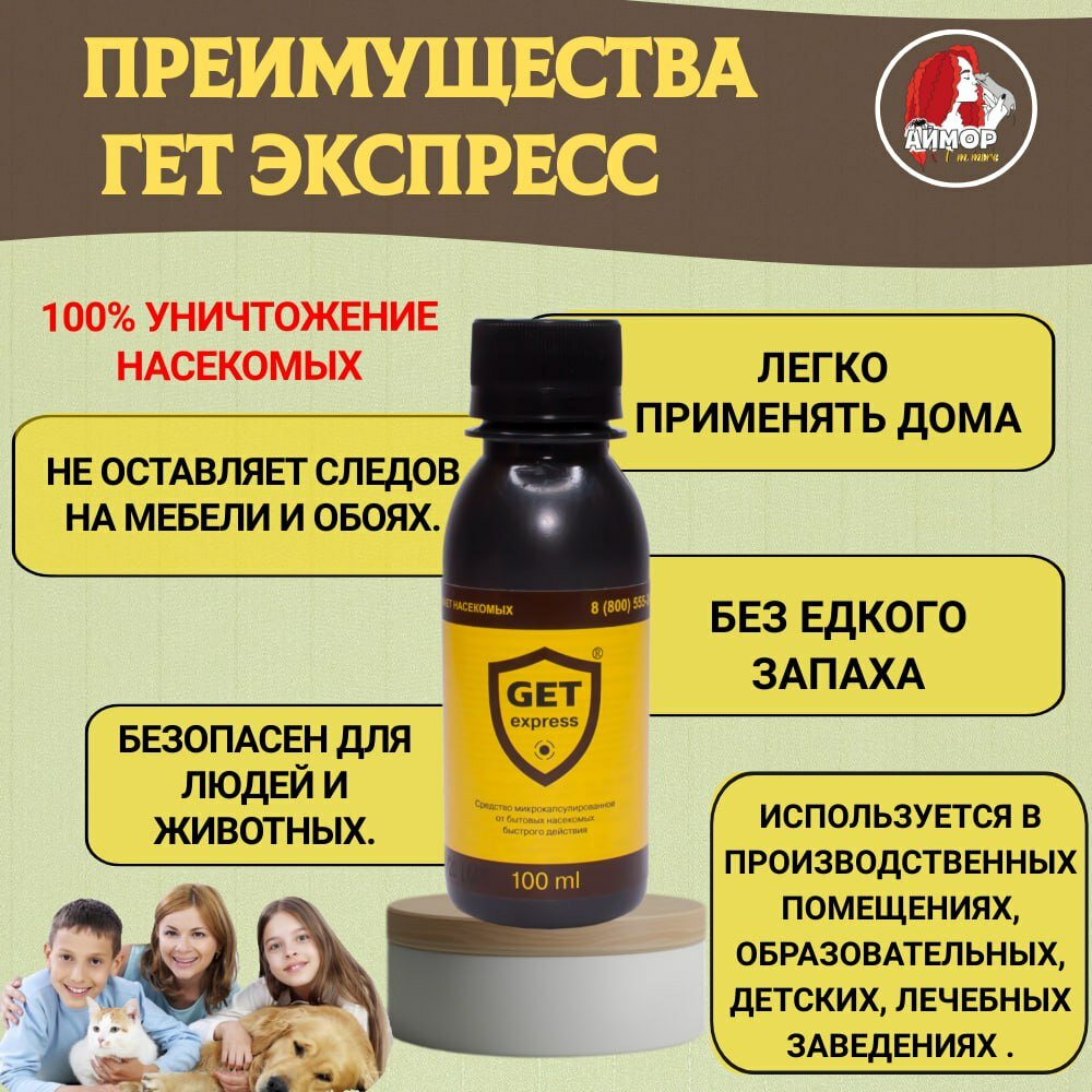 Средство Гет Экспресс (Get Express) от клопов, тараканов, блох, муравьев, 100 мл