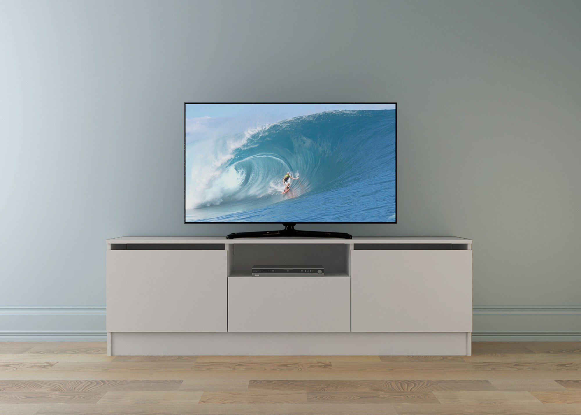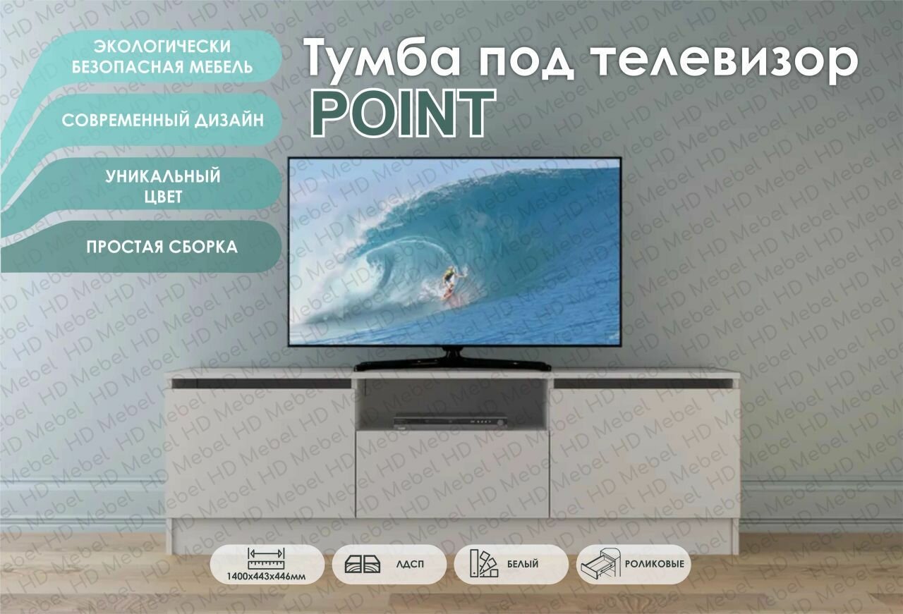 Ларго тумба ТВ 140 х 44,6 х 44,3 см, 2 двери, 1 ящик, ЛДСП Белый