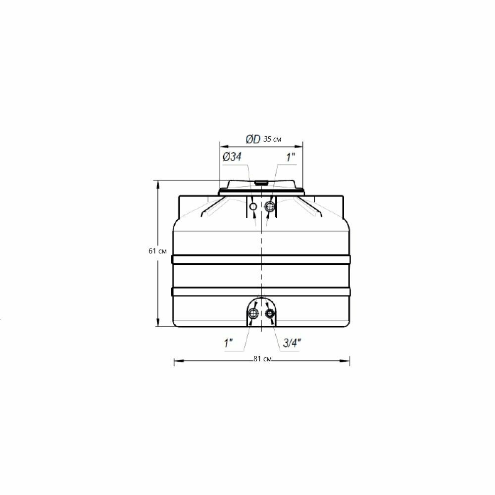 Бак пластиковый 200 л. синий крышка с дыхательным клапаном, штуцеры диаметр-740 мм высота-610 мм ATV AQUATECH (Акватек)