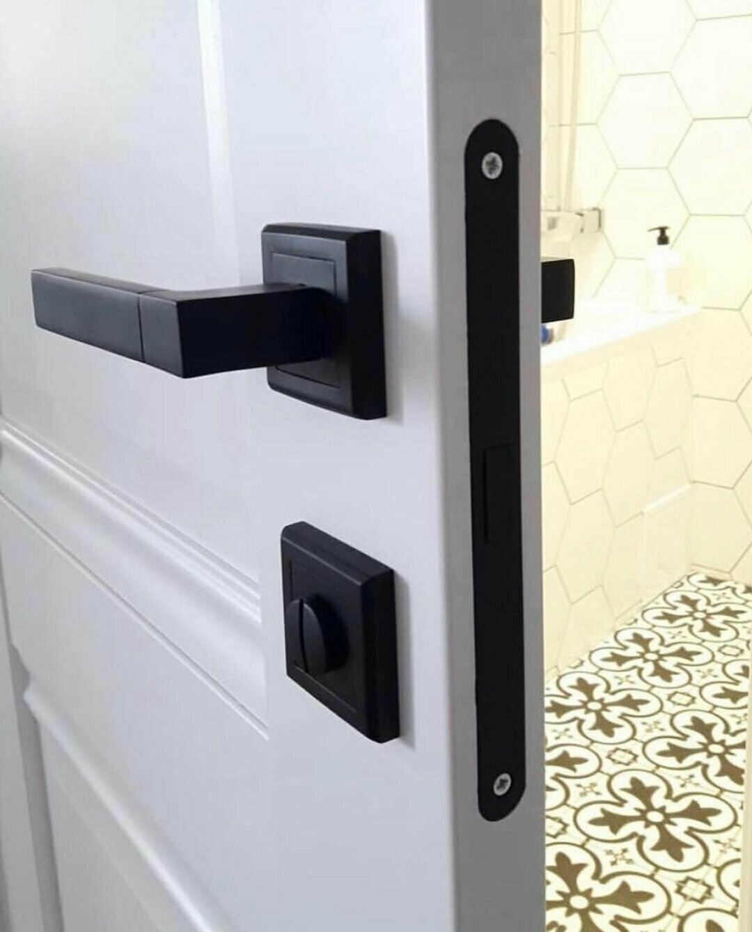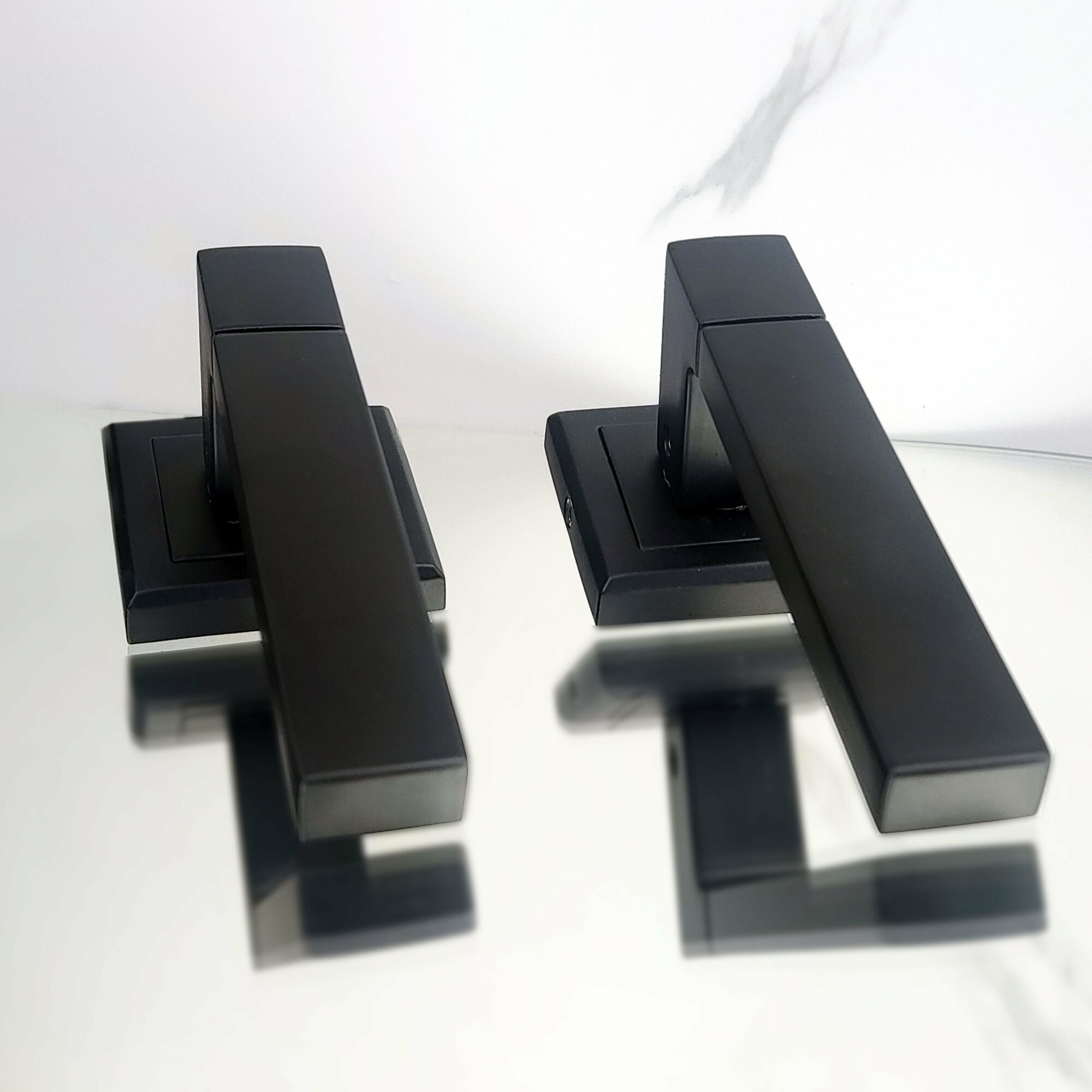 Ручка дверная чёрная на квадратной накладке FUKOKU Morelli MH-28 BL-S