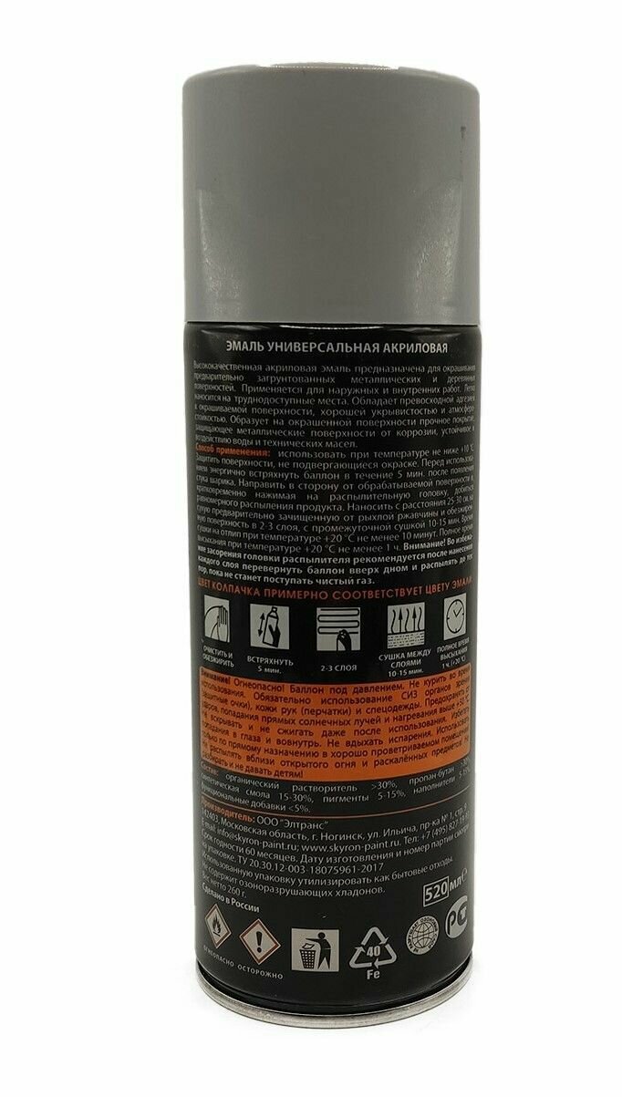 Купить SKYRON SR17040 Краска серая аэрозоль 520мл RAL 7040 акриловая SKYRON