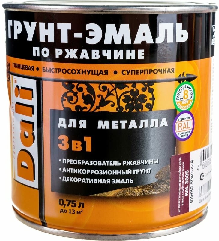 СохранитьГрунт-эмаль по ржавчине 3 в 1 Dali (0,75л), RAL 3005 винно-красный интересное: