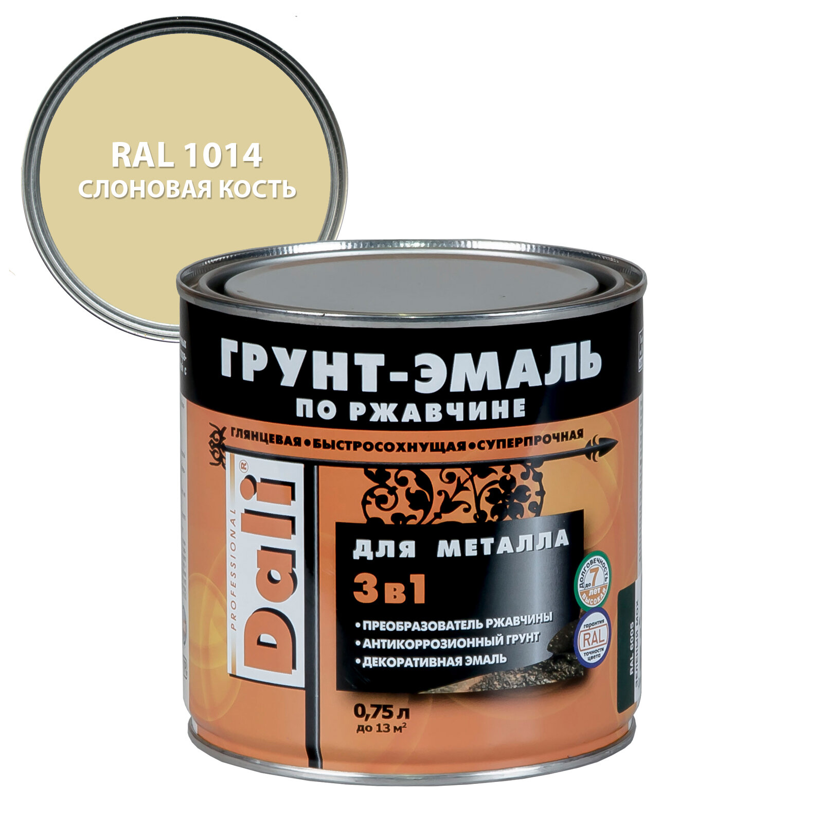 Купить Грунт-Эмаль по Ржавчине 3 в 1 Dali 0.75л Слоновая Кость Гладкая для Металлических Поверхностей / Дали Грунт-Эмаль.