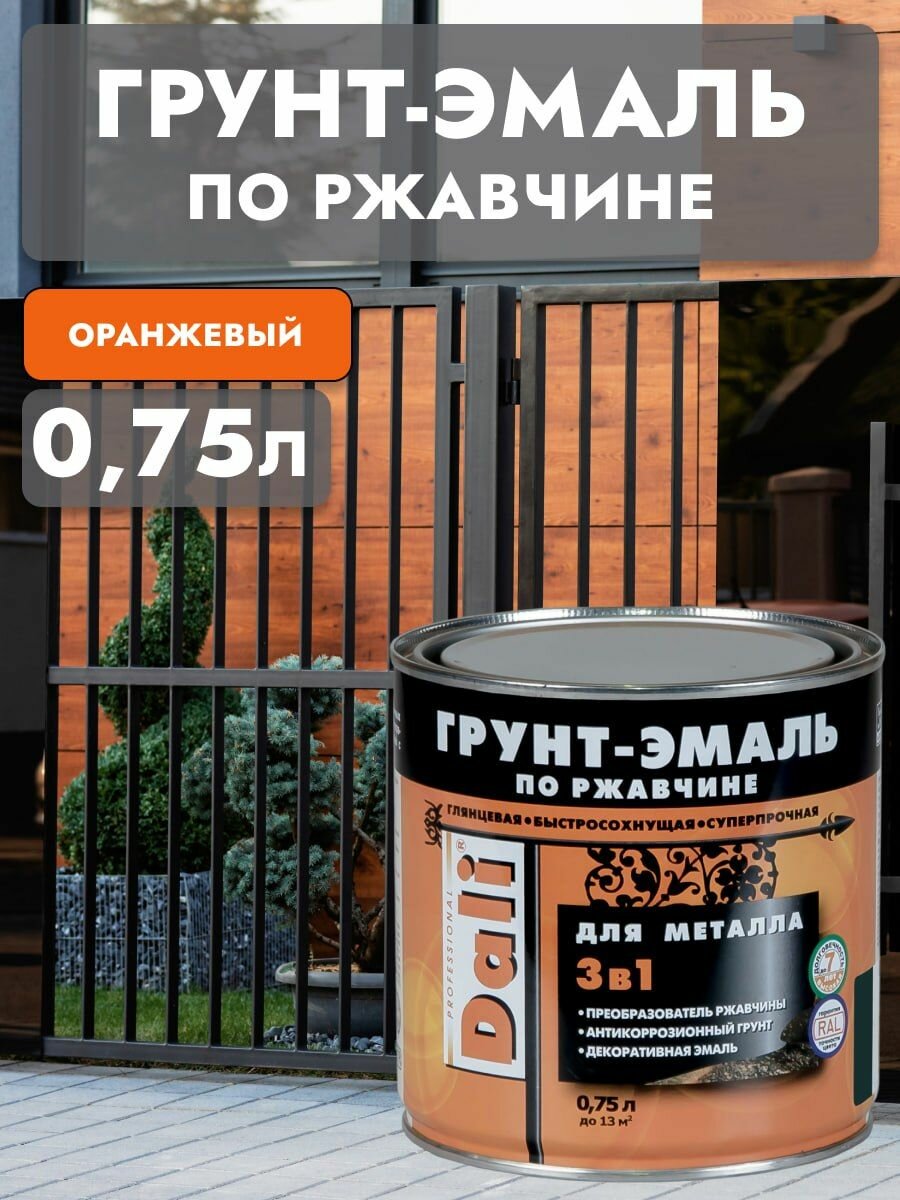 Купить Грунт-эмаль по ржавчине Dali 3 в 1, глянцевая, 0,75 л, оранжевая