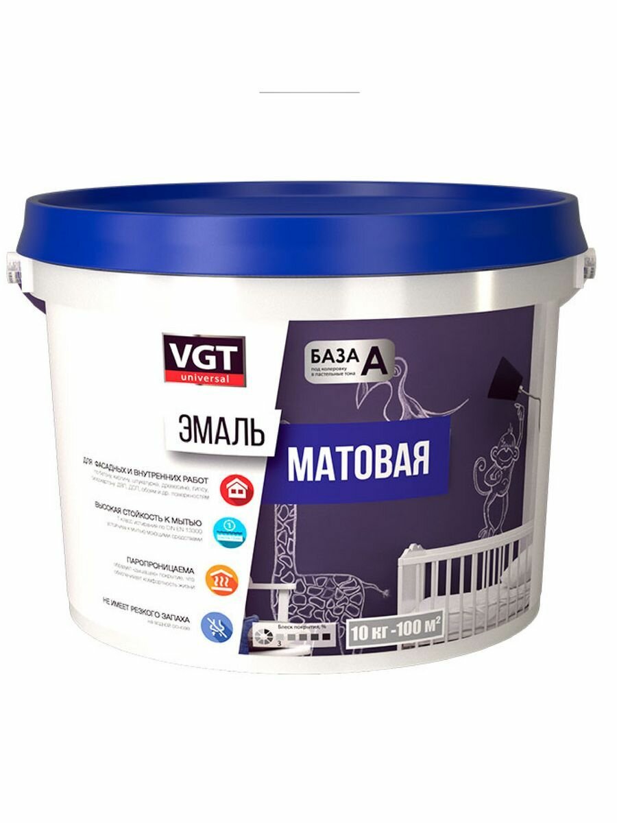 Эмаль акриловая VGT матовая универсальная база A 1,5 кг