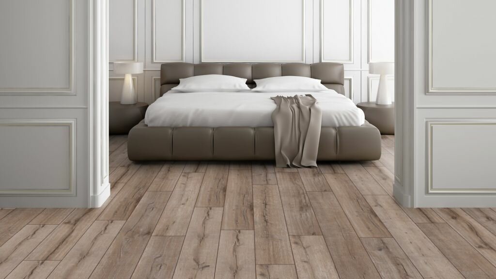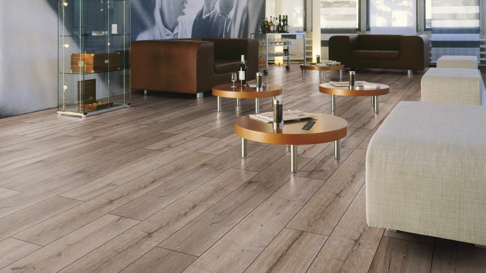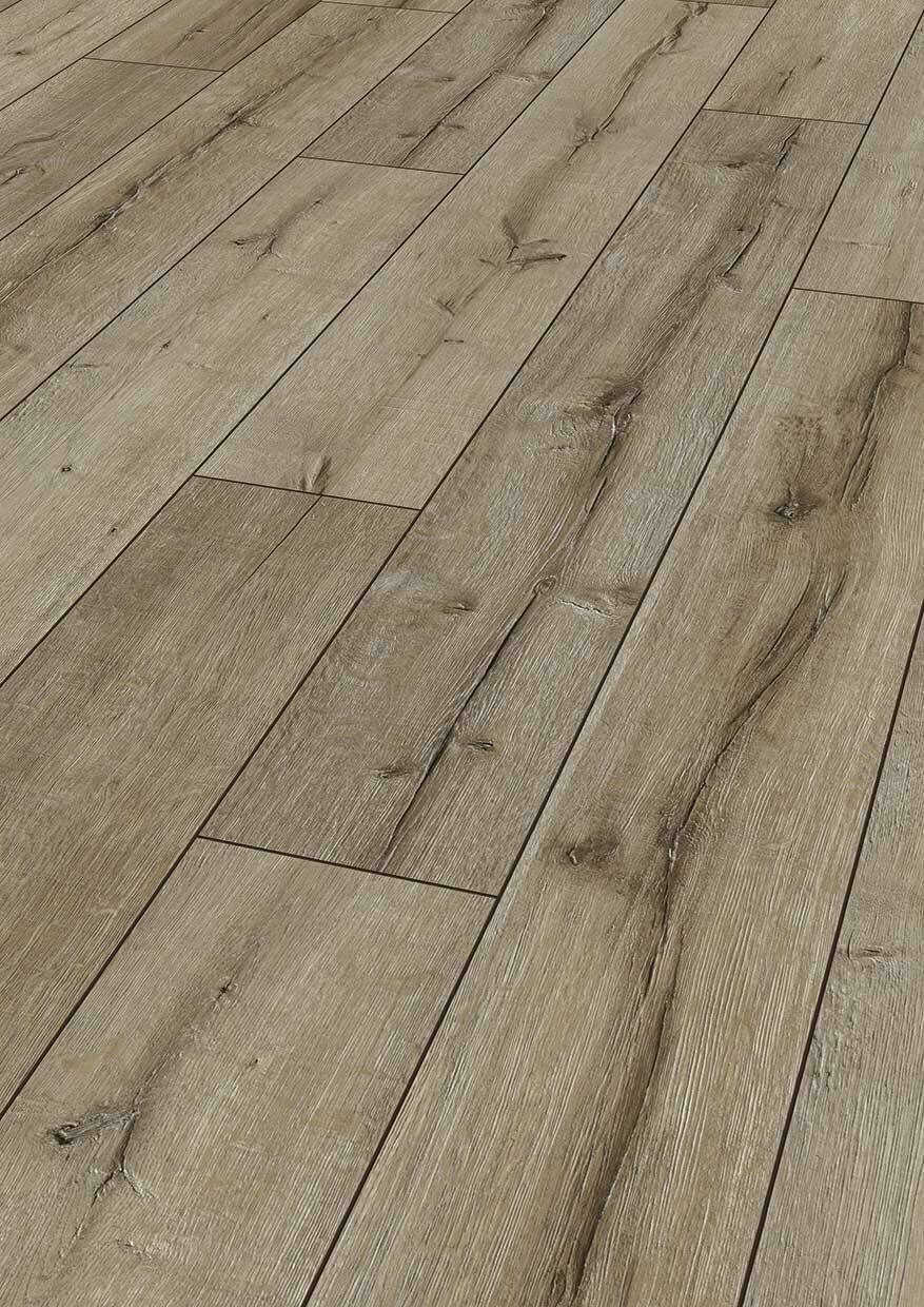 Выбрал вариант Kronotex Aqua Robusto. Интересный чёткий рисунок, что важно. Почитал отзывы, отмечают, что не выцветает со временем. Могу отметить, что он хорошо укладывается. На вид выглядит прочно. Но через месяц пользования могу сказать, что не продавливается под ногами и шкафами. Ногам комфортно ходить по ламинату |