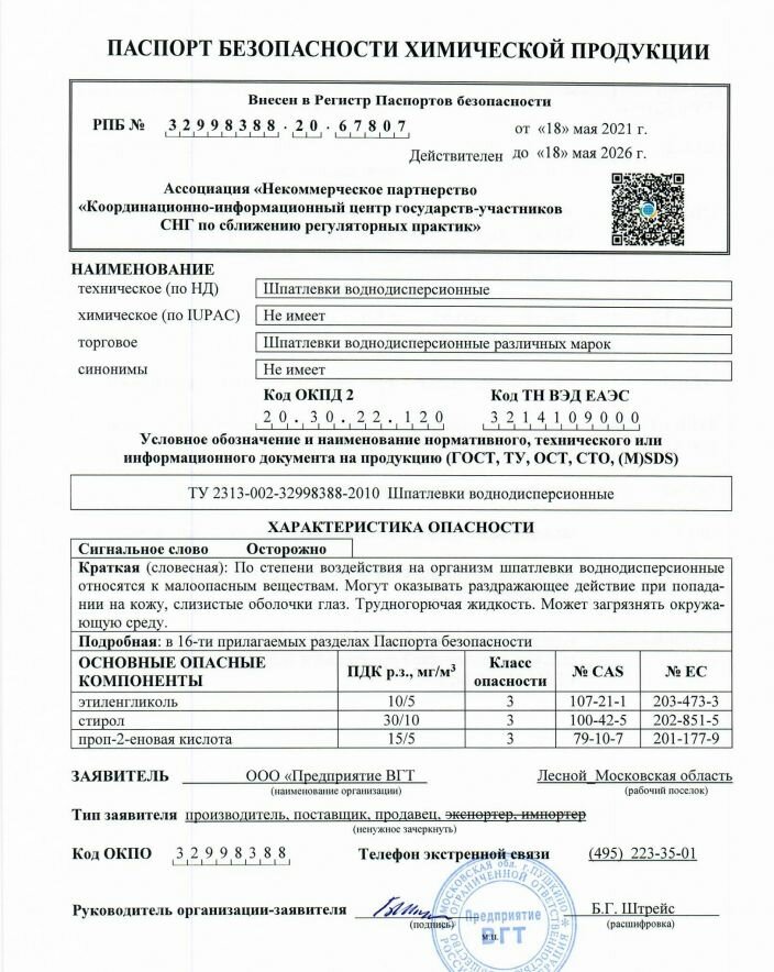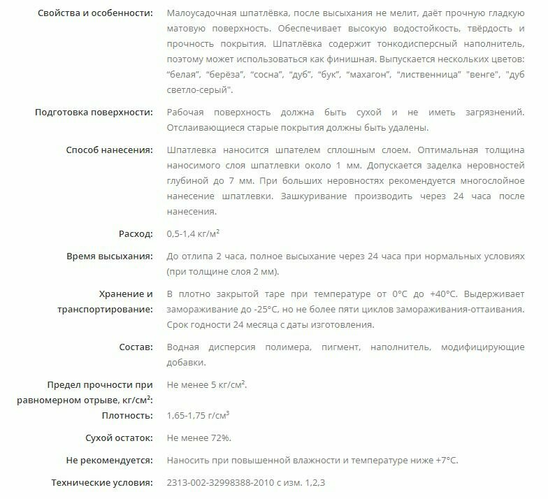 | Минусы: | Шпаклюется плохо. Каждый последующий мазок шпаклевания стягивает предыдущий мазок. |