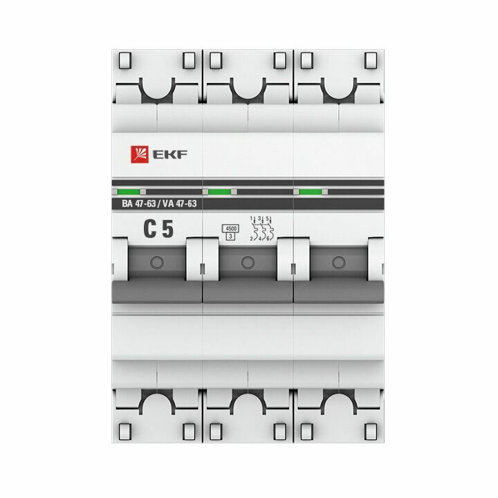 Автоматический выключатель EKF PROxima ВА 47-63 3Р 5А тип C 4,5 кА 660 В на DIN-рейку (mcb4763-3-05C-pro)