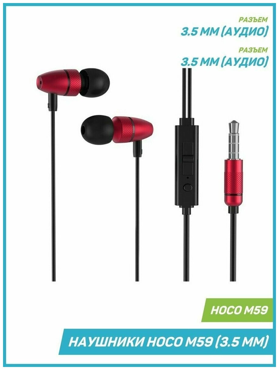 Проводные наушники вакуумные HOCO M59 Magnificent, AUX Jack 3.5mm, для телефона/компьютера, красный