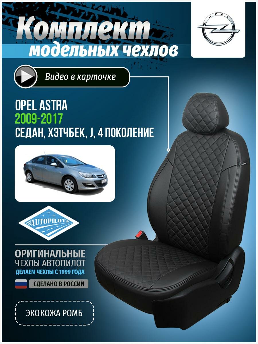 Купить Чехлы на автомобильные сидения Автопилот для Opel Astra J Sd/Hb с 09г. (Экокожа ромб, Черный + Черный)