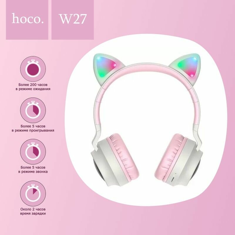 Беспроводные накладные наушники HOCO W27 Cat Ear, Bluetooth 5.0, розовые
