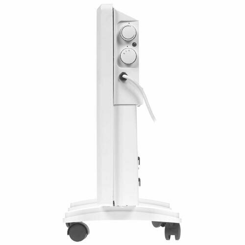 Легко снижает нагрев с максимального до поддержания умеренной температуры в комнате. Компактный, удобно перемещать (в комплекте идут 2 ножки и 4 колесика). |