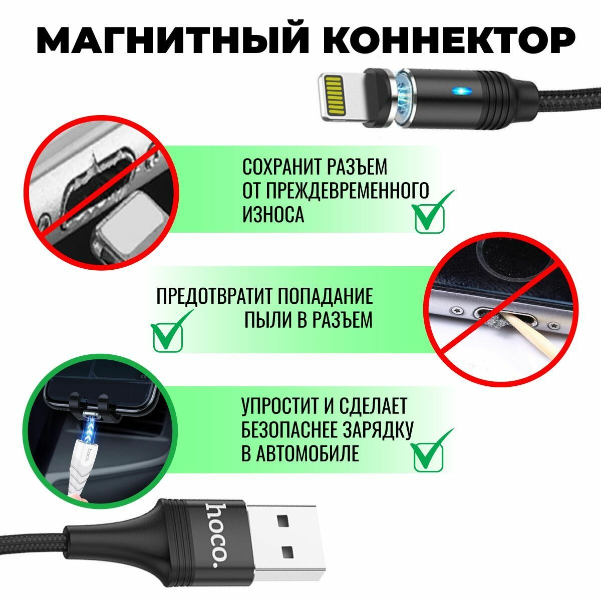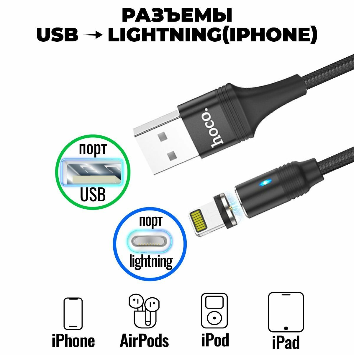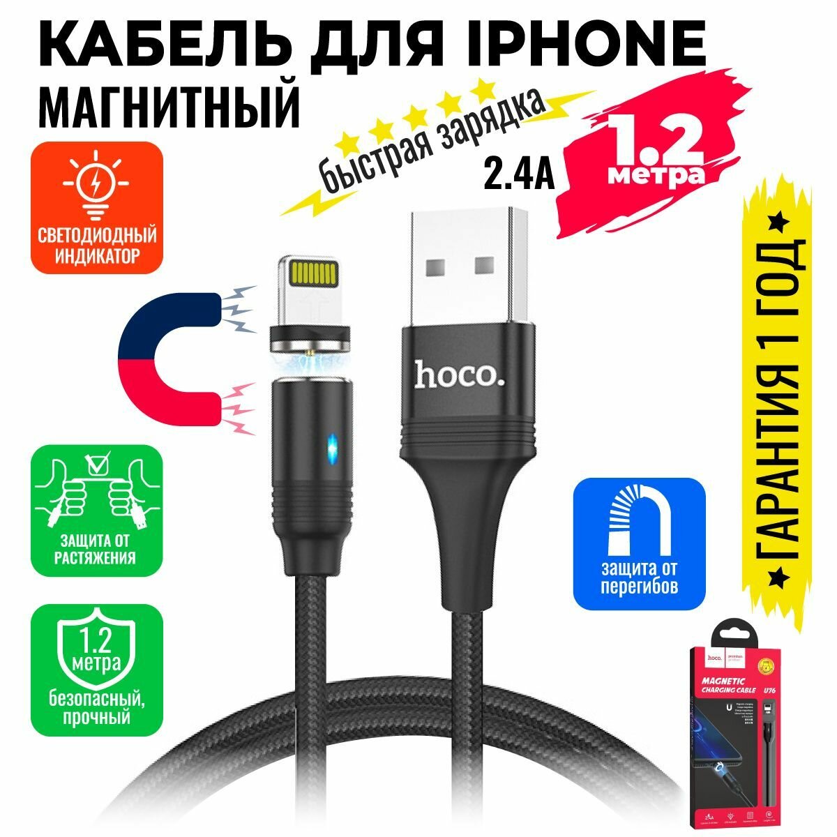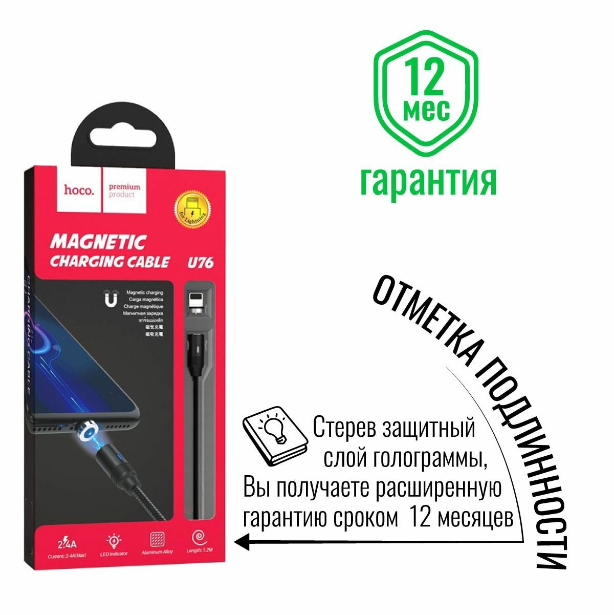 USB кабель магнитный HOCO (U76) 2.4A iPhone Lightning 8 pin (1,2м), черный