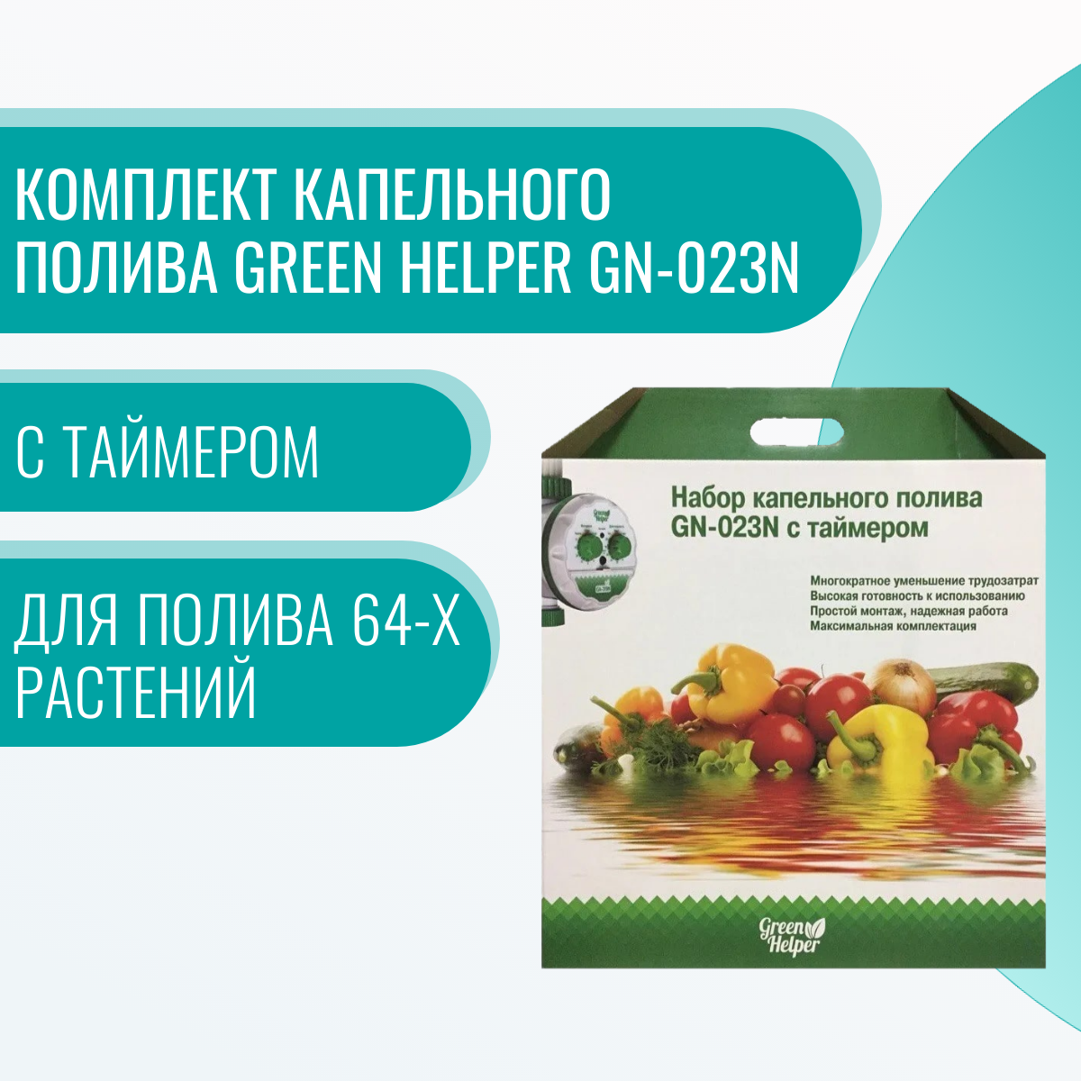 Green Helper Набор капельного полива GN-023N, длина шланга: 20 м, с таймером, кол-во растений: 64 шт.
