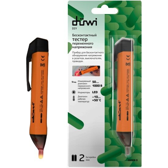 Тестер-индикатор Duwi напряжения в сети переменного тока, бесконтактный, до 1000В, 26008 0