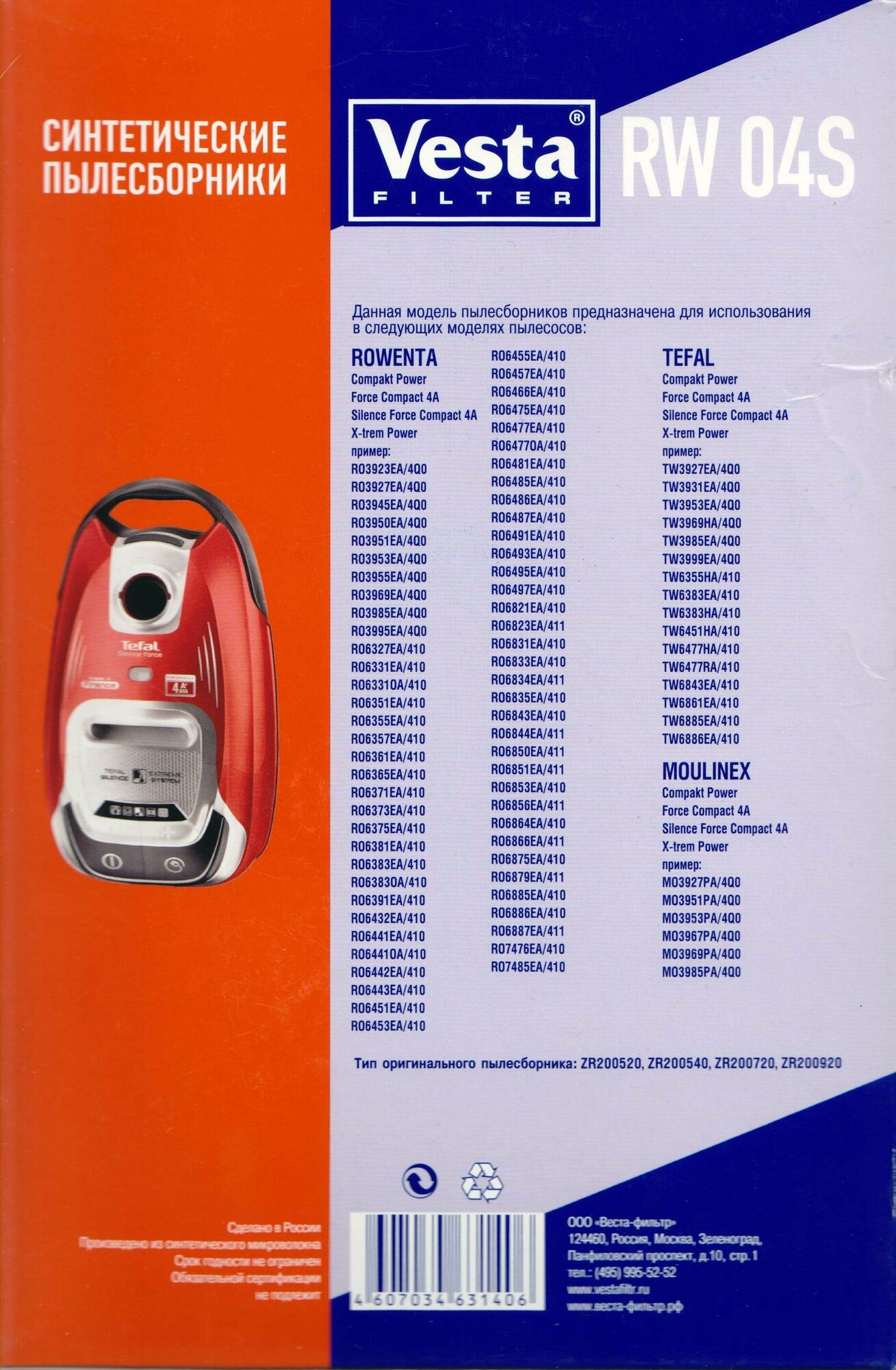 | Совместимые модели | MOULINEX: Compact Power, Force compact 4A, Silence Force Compact 4A, MO3927PA/4Q0, MO3951PA/4Q0, MO3953PA/4Q0, MO3967PA/4Q0, MO3969PA/4Q0, MO3985PA/4Q0; ROWENTA: Silence Force 4A, RO 6400...6499, Original ZR200540, RO63.., RO64.., RO68.., Force compact 4A, Compact Power, Silence Force Compact 4A, Xнетtrem Power, RO3923EA/4Q0, RO3927EA/4Q0, RO3945EA/4Q0, RO3950EA/4Q0, RO3951EA/4Q0, RO3953EA/4Q0, RO3955EA/4Q0, RO3969EA/4Q0, RO3985EA/4Q0, RO3995EA/4Q0, RO6327EA/410, RO6331OA/410, RO6351EA/410, RO6355EA/410, RO6357EA/410, RO6361EA/410, RO6365EA/410, RO6371EA/410, RO6373EA/410, RO6375EA/410, RO6381EA/410, RO6383EA/410, RO6383OA/410, RO6391EA/410, RO6432EA/410, RO6441EA/410, RO6441OA/410, RO6442EA/410, RO6443EA/410, RO6451EA/410, RO6453EA/410, RO6455EA/410, RO6457EA/410, RO6466EA/410, RO6475EA/410, RO6477EA/410, RO6477OA/410, RO6481EA/410, RO6485EA/410, RO6486EA/410, RO6487EA/410, RO6491EA/410, RO6493EA/410, RO6495EA/410, RO6497EA/410, RO6821EA/410, RO6823EA/411, RO6831EA/410, RO6833EA/410, RO6834EA/411, RO6835EA/410, RO6843EA/410, RO6844EA/411, RO6850EA/411, RO6851EA/411, RO6853EA/410, RO6856EA/411, RO6864EA/410, RO6866EA/411, RO6875EA/410, RO6879EA/411, RO6885EA/410, RO6886EA/410, RO6887EA/411, RO7476EA/410, RO7485EA/410; TEFAL: TW6477RA, TW6886EA, TW3999RA, TW3931RA, TW6383EA, Original ZR200540, Xнетtrem Power, TW3931EA, TW3999EA, TW6477, TW6843, TW6861, Compact Power, Force compact 4A, Silence Force Compact 4A, TW3927EA/4Q0, TW3931EA/4Q0, TW3953EA/4Q0, TW3969HA/4Q0, TW3985EA/4Q0, TW3999EA/4Q0, TW6355HA/410, TW6383EA/410, TW6383HA/410, TW6451HA/410, TW6477HA/410, TW6477RA/410, TW6843EA/410, TW6861EA/410, TW6885EA/410, TW6886EA/410 |