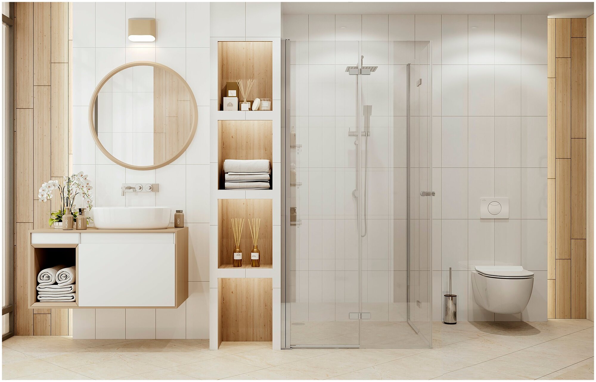 | Плюсы: | Гидрофобное покрытие, толщина стекла 6 мм, двери складываются наружу и во внутрь |
