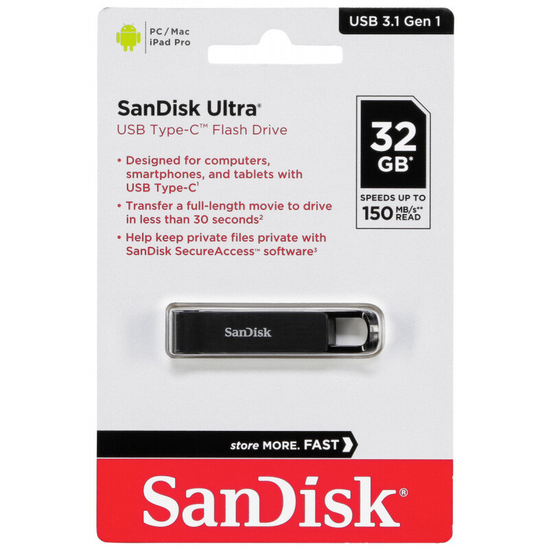 Флеш-накопитель SanDisk Ultra USB 3.1 Type-C 32GB, R 150 МБ/с
